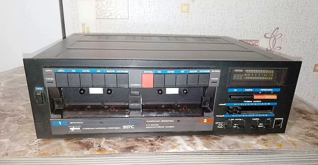 «Вильма-207С» Это был не просто магнитофон, а целая домашняя студия для работы с музыкой на кассетах. Его выпускал Вильнюсский завод точного машиностроения «Вильма», известный своей качественной аудиотехникой.