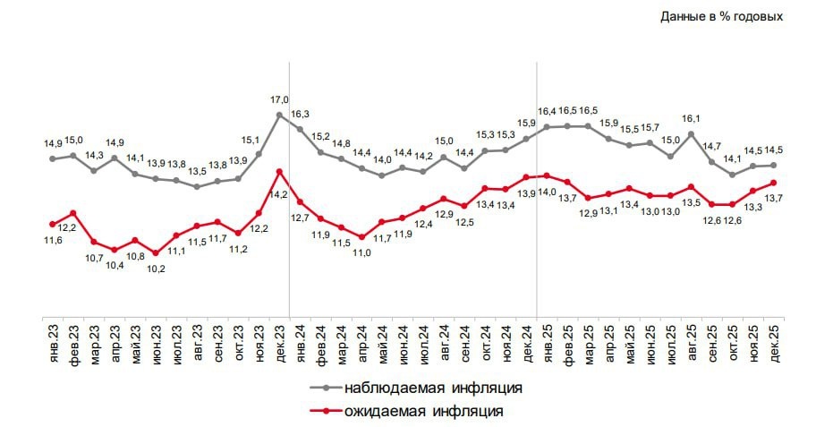 Наблюдаемая инфляция в декабре осталась 14,5%,