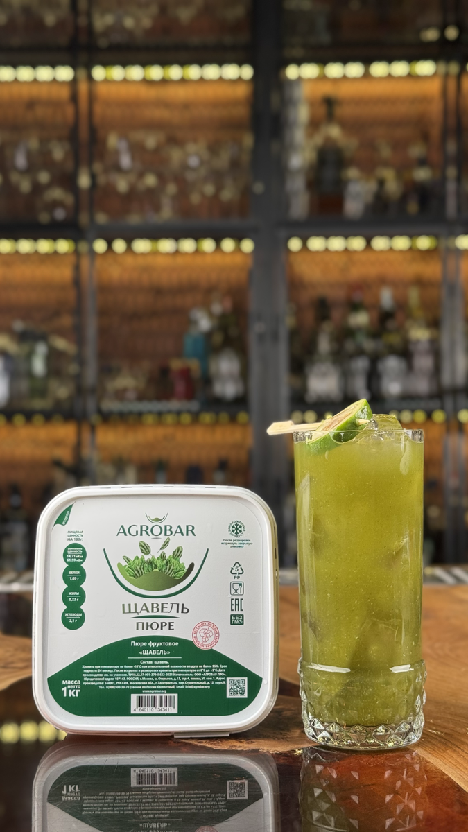 Пюре AGROBAR Щавель - 40мл Пюре AGROBAR Лимон - 15мл Сироп AGROBAR Фейхоа - 25мл Содовая - 100мл Метод: Билд / Стир Выход: 200мл Бокал: Хайбол + Лёд Кусок Гарниш: Фейхоа - 1 слайс