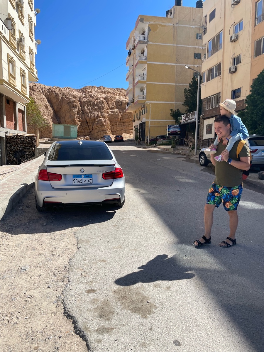 Море шепчет, бриз прохладный, ага, это тот бриз самый, за которым мы собственно и прилетели в Хургаду на наш затянувшийся отпуск. Вроде бы все хорошо, я бы даже сказал отлично, дочурка в новом платьице, жена улыбается, я с гугл-картами в телефоне. Как вы уже могли догадаться по контексту выше, по итогу мы собрались прогуляться за территорию отеля, собрались и пожалели! Сидеть в отеле уже надоело... бассейн, анимация, шведский стол, все круто, но хочется же и настоящего Египта посмотреть! Надо увидеть знаменитого колорита, мечети, рынка с сувенирами, как говорится - кто был, тот видел. Да и все та же карта показывает, что до всей этой красоты нужно всего 15 минут пешком протопать. Подготовились по-взрослому, вода (пара бутылок), телефоны заряжены, обувь удобная. Так что на небольшую прогулку всего было более чем достаточно. Если б мы знали, насколько она будет "небольшой"... Вышли за ворота, первые 50 метров вообще сказка. Здесь ничего нового не расскажу, охранник улыбается, асфальт