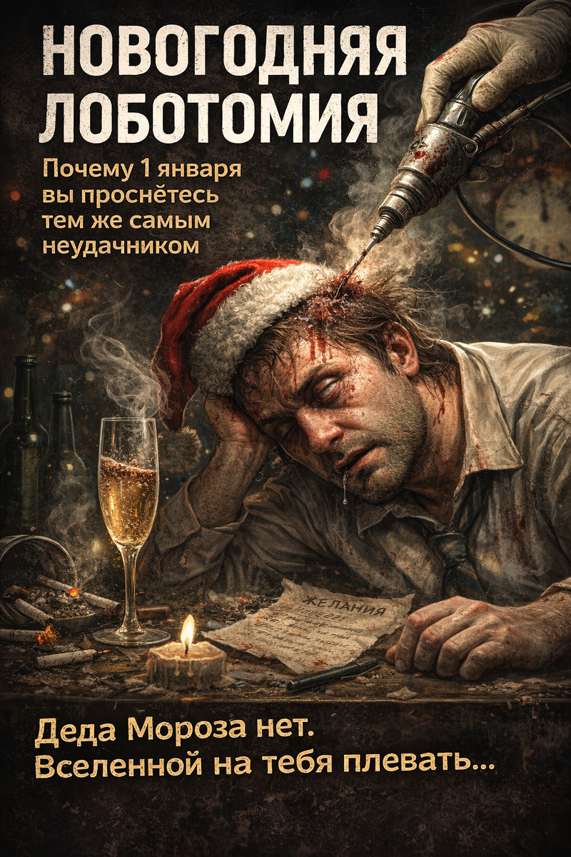 Я смотрю на этот ежегодный, всенародный ритуал коллективного самообмана, и у меня в голове только одно слово: лоботомия. Вы добровольно, с улыбкой на лице, под бой курантов, производите хирургическое удаление той части вашего мозга, которая отвечает за критическое мышление, за причинно-следственные связи, за элементарную, с**а, взрослую ответственность. Вы верите, что смена последней цифры в календаре каким-то магическим образом аннулирует все ваши привычки, страхи, долги и лишние килограммы, накопленные за предыдущие 365 дней.