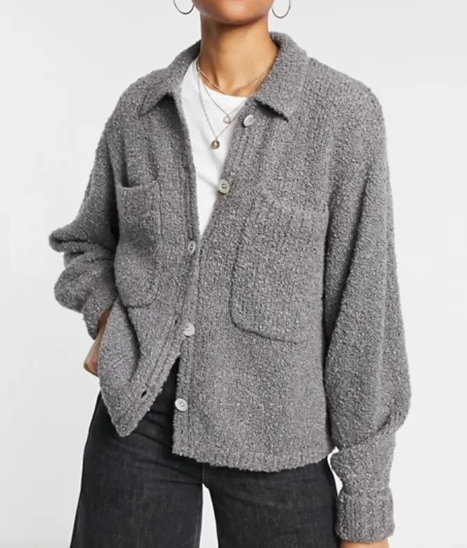Увидела в интернете жакет-рубашку из мелкого букле. Чем-то эта модель меня зацепила.