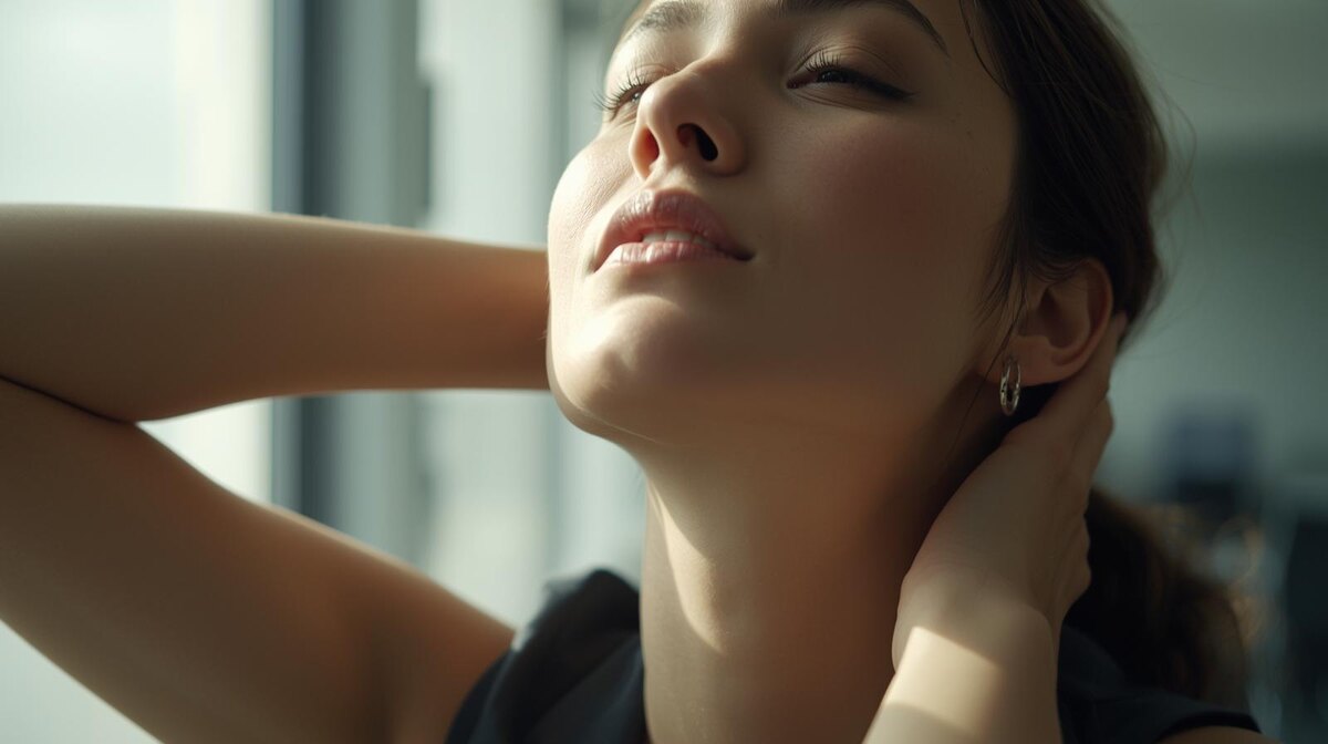 Сделайте по 5 круговых движений в каждую сторону. 💡 Этот “трюк” снимает напряжение с шеи и плеч — именно там накапливается офисный стресс.