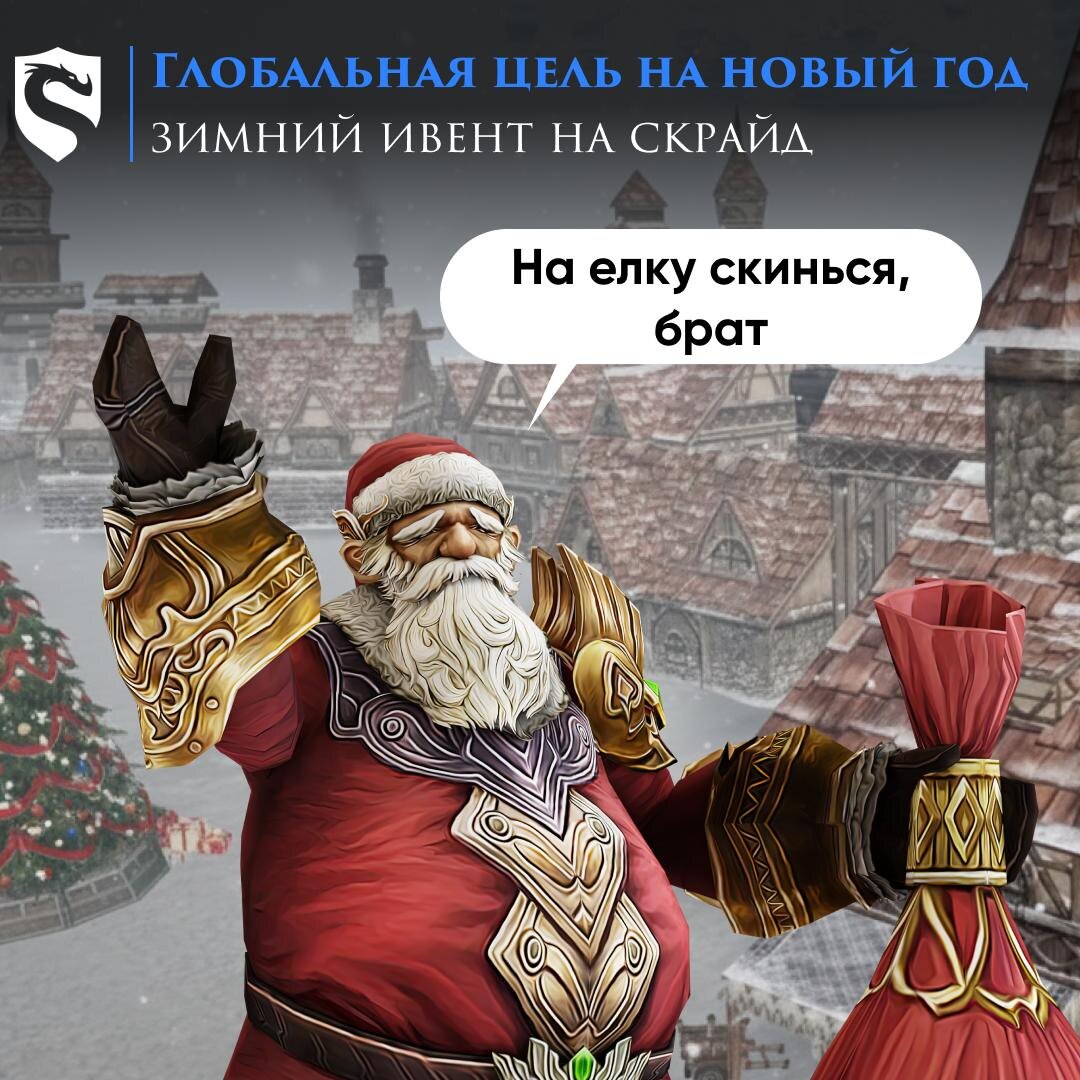Новогодняя локация, рыбалка, бонусы за покупку монет и прочие радости – это, конечно, топ. Но в этом году мы решили пойти дальше, и сделали глобальную цель всего ивента – помочь Санте и получить награду всем сервом! 🎄 С запуском Новогоднего Ивента на всех серверах Скрайда появится специальный NPC — Новогодняя Ёлка. Этому NPC вы можете пожертвовать Новогодние Монеты, чтобы помочь Санте собрать: – 1.000.000 Новогодних Монет на Скрайд X1000 – 3.000.000 Новогодних Монет на Скрайд X2 – 5.000.000 Новогодних Монет на Скрайд X50 После достижения общей цели сбора у Ёлки активируется праздничный бафф для всех игроков: – Santa Gift: Увеличивает рейты Adena/Drop/Spoil на 15%. Увеличивает Скор. Атк. на 5%, Скор. Маг. на 5%, Макс HP/MP/CP на 500. Время Действия: 1 час. Помимо этого, в мире появятся специальные зимние мобы (Ice Guard и Ice Slayer), а на сервере x2 станет возможна покупка Семян Снежного Фрукта для вашей Фермы. Также во время ивента будет доступна вкладка "Рейтинг Меценатов" в рей