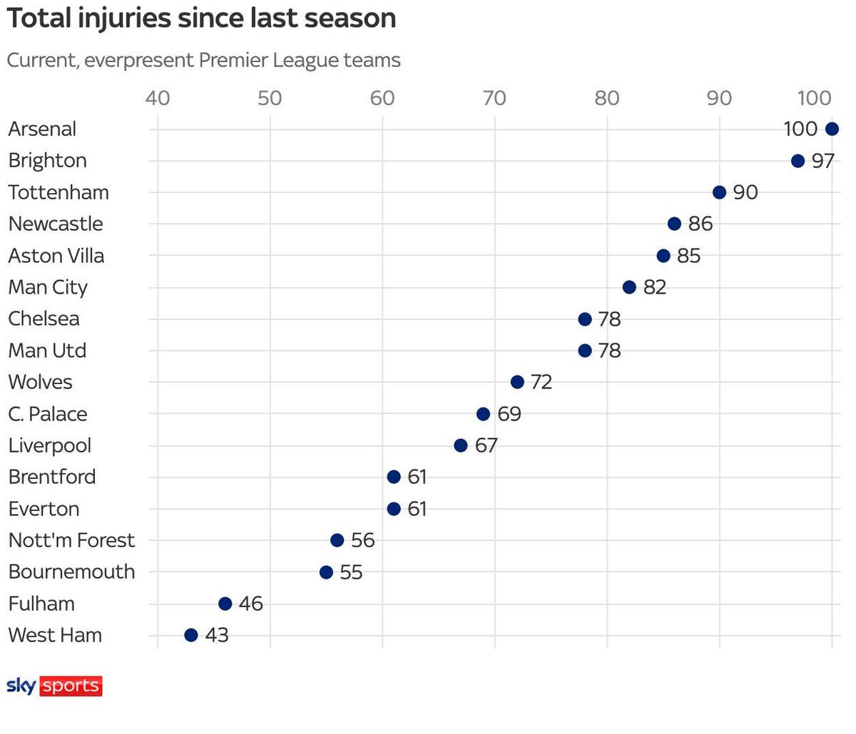 "Арсенал" достиг рубежа в 100 травм со старта прошлого сезона — больше всех в Премьер-Лиге