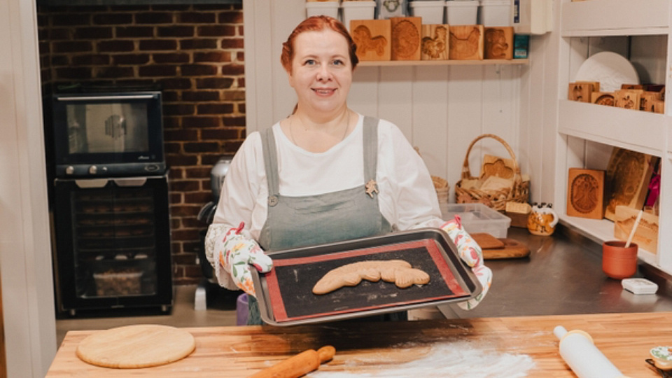 После этого Валентина Говорова переворачивает доску и очень ловко сбрасывает готовую «щуку» на противень, который примерно на 15-20 минут отправляется в духовку. Это как раз то время, чтобы среди ароматов пряничной мастерской не спеша продолжить разговор.