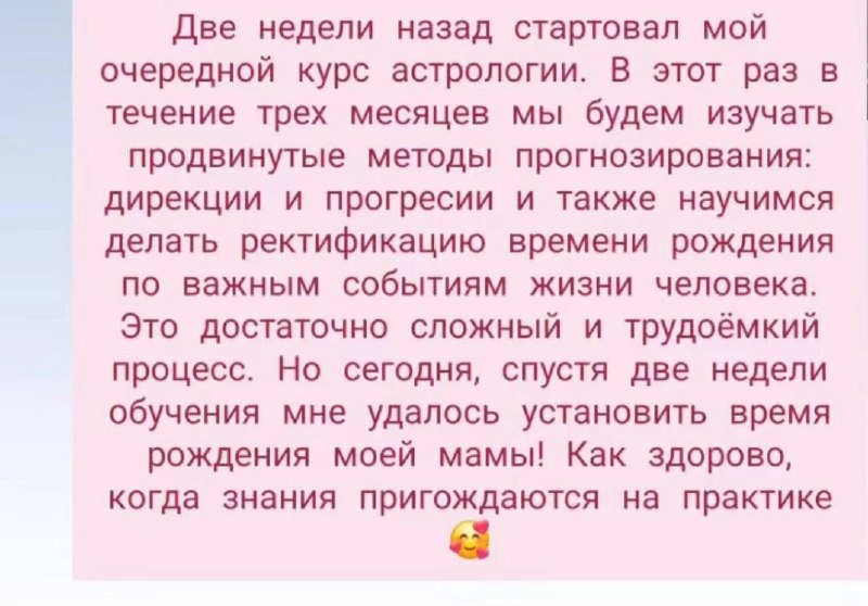 👉Первая – дирекция, благодаря этой методики мы устанавливаем время рождения человека. Уже на третьей неделе у девочек пошли классные результаты.🙂