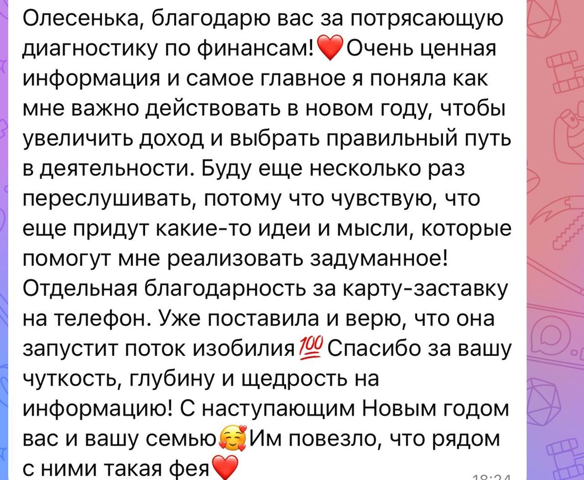 ? Представьте себе: вы стоите у двери, за которой спрятаны ответы на все ваши финансовые вопросы. ❓Что ожидает в 2026 году в сфере денег? ❓Что нужно делать для финансового роста? ❓Что будет тормозить денежный поток? 🔑И ключ от этой двери прямо у вас в руках — это персональная финансовая диагностика на 2026 год! 🙌Я подготовила для вас уникальную финансовую диагностику по трем периодам 2026 года, которая поможет определить ваши финансовые точки роста и создать действенный план достижения целей. Что вас ждет: ✔️ Анализ факторов, влияющих на ваше финансовое положение в 2026 году ✔️ Определение стратегии финансового поведения и конкретных шагов к успеху ✔️ Выявление ваших сильных сторон и способов их использования ✔️ Оценка внутренних и внешних препятствий, мешающих вашему росту, и план их преодоления ✔️Что важно предпринять в сфере вашей деятельности, чтобы выйти на новый уровень в финансах Обладание полной картиной — первый важный шаг к улучшению материального благосостояния! 👌