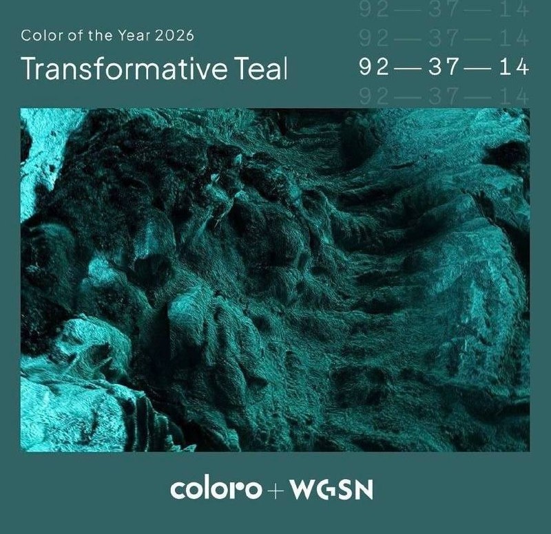 Совершенно другое мнение у агентств WGSN и Coloro, по их совместному прогнозу цветом 2026 года является «Transformative Teal» (Преобразующий