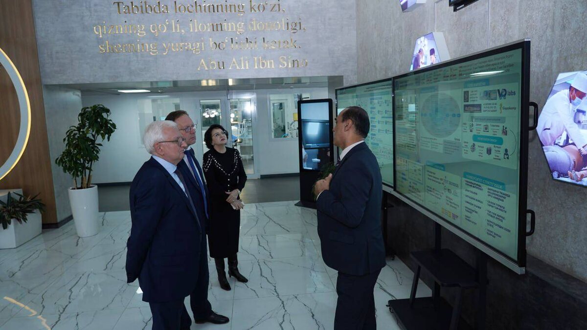➡️Bugun Rossiya Federatsiyasining Akademik N.P. Bochkov nomidagi Tibbiy-genetik ilmiy markazi (TGIM) delegatsiyasi Toshkent davlat tibbiyot universitetiga tashrif buyurdi. ✈️Mehmonlarni universitet rektori, professor Shuxrat Boymuradov samimiy kutib oldi va Akademik N.P. Bochkov nomidagi Tibbiy-genetik ilmiy markazi direktori Sergey Kutsev, TGIM Toshkent filiali direktori Tatyana Xegay, Rossiya Fanlar akademiyasining korrespondent a’zosi Aleksandr Polyakovdan iborat delegatsiyani Toshkent davlat tibbiyot universitetining ta’lim, ilmiy-tadqiqot va xalqaro hamkorlik yo‘nalishlaridagi faoliyati bilan tanishtirdi. 🔹Ma’lumot uchun: Akademik N.P. Bochkov nomidagi Tibbiy-genetik ilmiy markazi 1969-yil tashkil etilgan bo‘lib, Rossiya Federatsiyasida genom va postgenom texnologiyalari sohasidagi yetakchi ilmiy muassasalardan biri hisoblanadi. Markaz tarkibiga 23 ta ilmiy bo‘linma, 8 ta klinik bo‘linma hamda 12 ta kafedra kiradi. Unda ordinatura, aspirantura va qo‘shimcha kasbiy ta’lim dastur