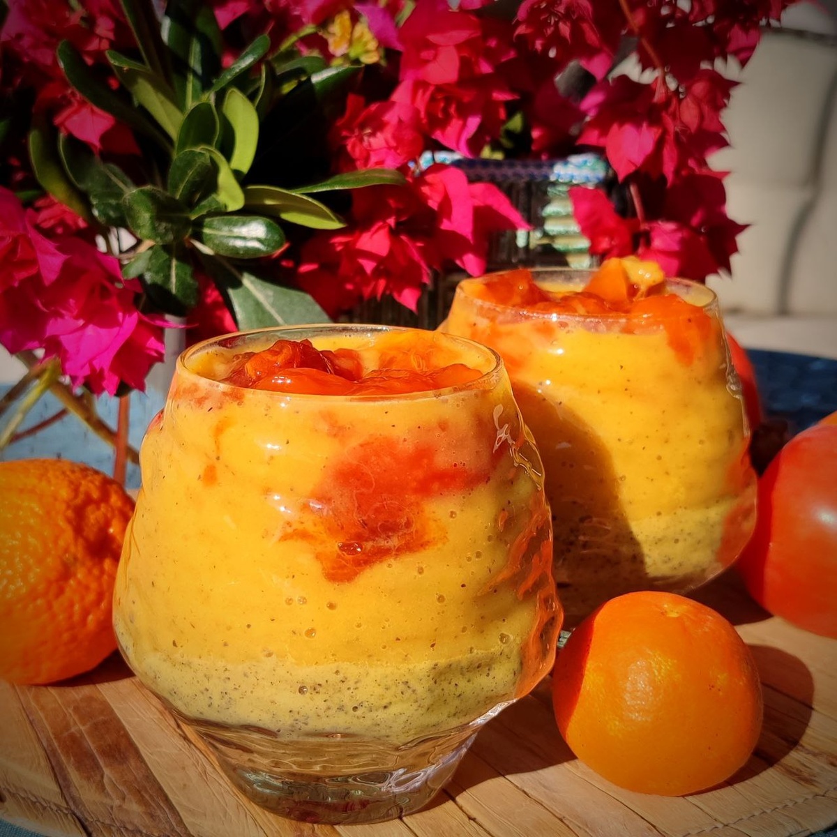 Коноплю после замачивания промываем. ⠀ Перемалываем в блендере с половиной тыквы и банана, 2мя мандаринами и финиками в однородную массу. Немного шелухи от конопли будет заметно внешне, и это нормально ⠀ Отливаем в бокалы. Это будет первый слой. ⠀ Добавляем в блендер оставшиеся части банана, тыквы и мандаринов и тоже перемалываем. ⠀ Отливаем в бокалы. Это будет 2й фруктовый слой. ⠀ Хурму добавляю отдельно сверху. Важно, чтобы она была мягкая и сладкая.