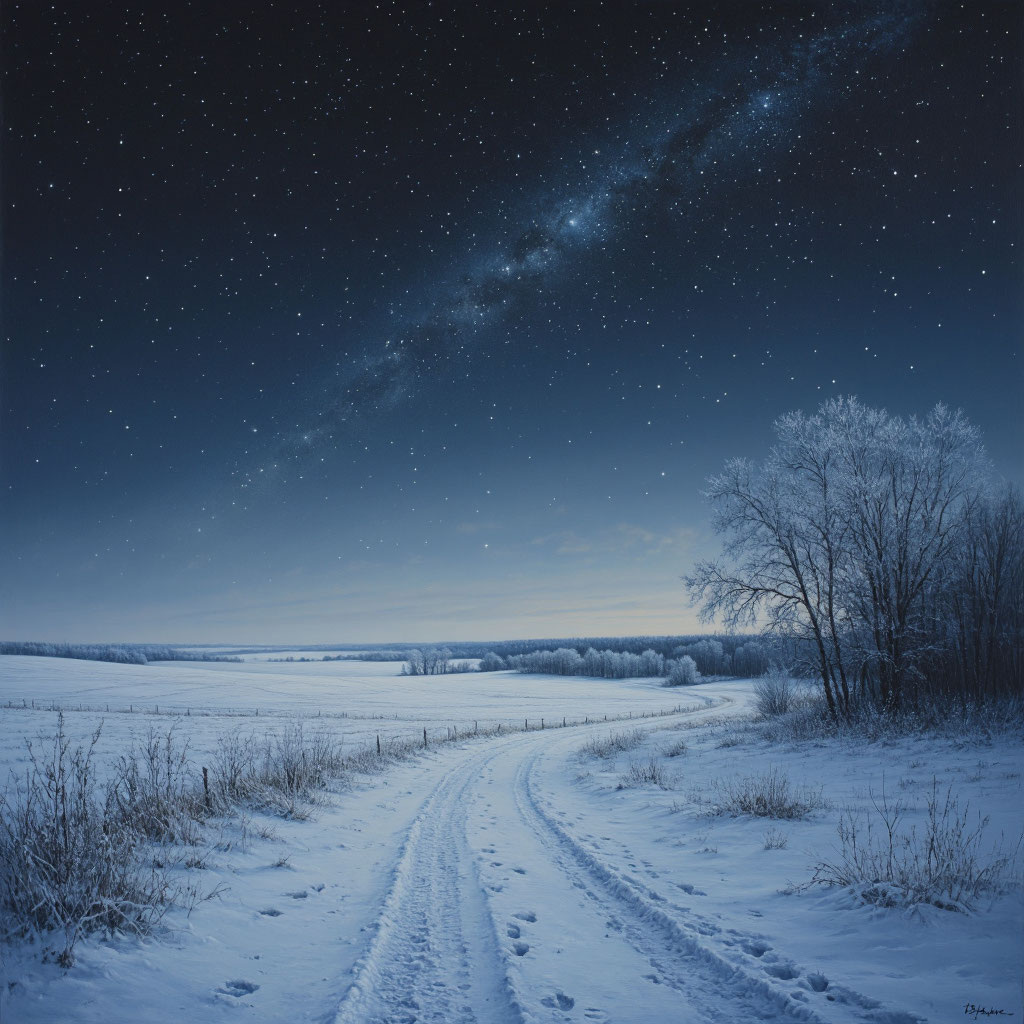 В воздухе — хрустальная тишина. Кажется, будто время на мгновение замерло, а мир затаил дыхание. За окном — сумеречная синева раннего вечера, и даже ветер притих, словно боится нарушить эту священную паузу между тьмой и светом. 🌌