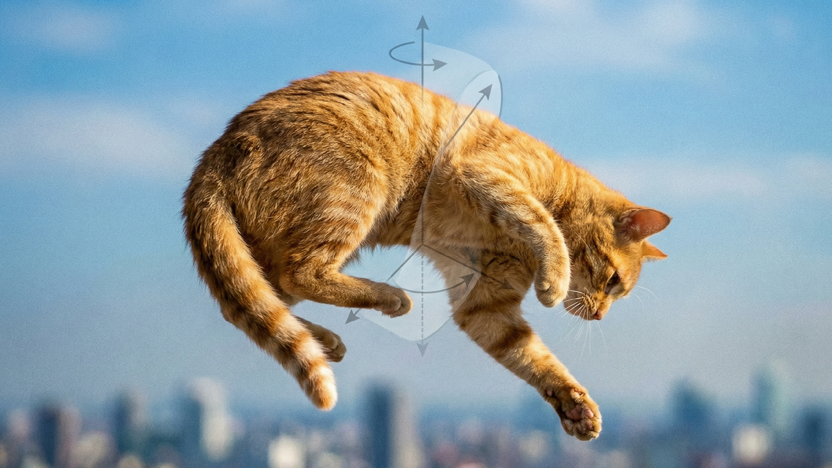 Есть старая шутка: если привязать к спине кошки бутерброд маслом вверх и бросить эту конструкцию, она зависнет в воздухе и будет вращаться вечно. Ведь бутерброд обязан упасть маслом вниз, а кошка — на лапы. Шутки шутками, но умение кошек выживать при падении с огромной высоты на самом деле ставила ученых в тупик веками. В 19 веке физики всерьез спорили: не нарушает ли кошка закон сохранения момента импульса? Ведь чтобы повернуться в воздухе, нужно от чего-то оттолкнуться. А кошка в полете ни от чего не отталкивается. Она висит в пустоте. Так как же она умудряется перевернуться за доли секунды, не имея опоры? Встроенный гироскоп в ухе Всё начинается не с мышц, а с головы. У кошки во внутреннем ухе есть невероятно чувствительный вестибулярный аппарат. Это природный акселерометр и гироскоп в одном флаконе. Как только лапы теряют опору, этот "датчик" мгновенно сообщает мозгу: "Мы падаем спиной вниз!". Реакция молниеносная — сигнал идет быстрее, чем вы успеете моргнуть. Кошка понимает, где
