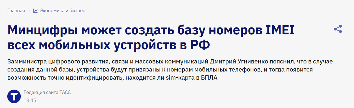 Отечественная цифровая бюрократия решила окончательно воплотить в жизнь принцип тотальной прозрачности частной жизни, не оставляя гражданам даже малейшей возможности сохранить приватность своих коммуникаций. Власти намерены переписать все мобильные устройства россиян — от смартфонов до планшетов и модемов — и поставить их на строгий государственный учет. Для реализации этого масштабного замысла Минцифры в 2026 году создаст единую базу уникальных идентификационных номеров оборудования — IMEI. Об этом на заседании Общественного совета при ведомстве сообщил замглавы министерства тов. Угнивенко, чьи слова приводят фед СМИ. Официальное обоснование этой инициативы выглядит, мягко говоря, спорным и вызывает вопросы у любого технически грамотного человека. Чиновник объяснил необходимость создания тотального реестра борьбой с со всякой прилетающей с сопредельной территории дрянью. Логика ведомства строится на следующей конструкции: если привязать каждый телефонный аппарат к конкретному номеру