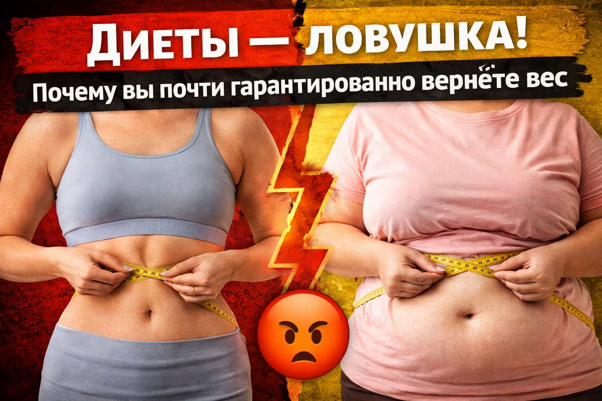 Важно! Всё, что я пишу на этом канале, — это интересные советы и рецепты, но не медицинские рекомендации. Хотите попробовать что-то из предложенного? Сначала поговорите с вашим врачом. Здоровье — прежде всего! Кажется, всё просто. Нашёл диету — потерял пару килограммов — порадовался — вернулся к обычной жизни. А потом… вес возвращается. Иногда тихо. Иногда с друзьями. Если это знакомо — вы не одиноки. По статистике, до 90% людей после диет набирают вес обратно, а нередко — ещё больше, чем было. И дело не в «слабой силе воли». Совсем не в ней. Так в чём же обман? И почему диеты так редко работают в долгую? Диеты продают простую идею: ешь меньше — худеешь больше. Но организм — не калькулятор. Он живой, упрямый и очень не любит, когда его пытаются перехитрить. Когда вы резко снижаете калории: тело включает режим экономии; замедляется обмен веществ; снижается уровень энергии; усиливается чувство голода. Организм думает, что наступили тяжёлые времена. И делает всё, чтобы выжить, а не выгляд