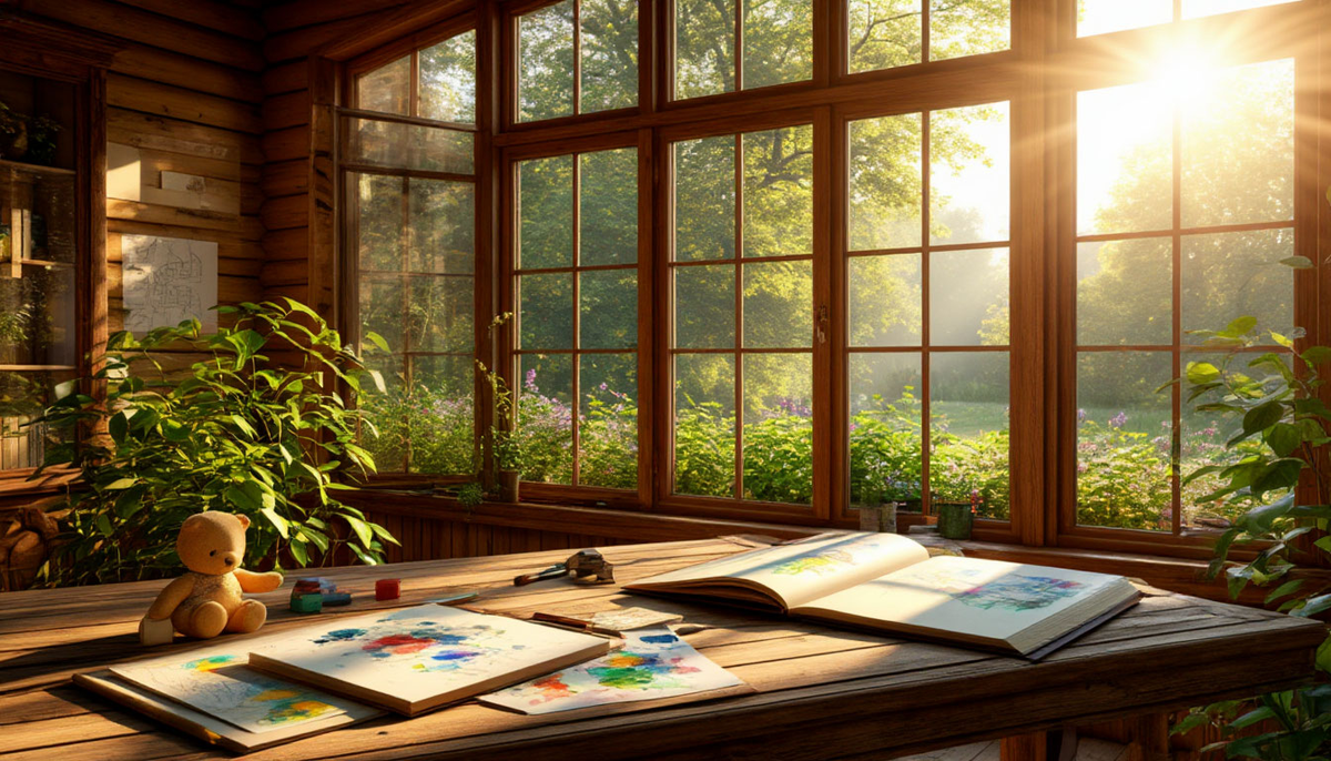 Иногда, чтобы понять целую историю, не нужно слов. Достаточно одного утра. Одного луча света, одного запаха, одной случайно оставленной вещи. Белая Роща на рассвете — это и есть такая немой, но красноречивый рассказ. Первый луч солнца, острый и холодный, режет стеклянный свод. Он зажигает миллионы мельчайших капель на листьях папоротников и орхидей, превращая пространство в дымчатый аквариум из света. Воздух густой от запаха влажной земли, цитруса и чего-то неуловимого — запаха роста. Это не теплица для выгонки цветов. Это лёгкие дома. Место, где день делает свой первый, глубокий вдох. На старой дубовой доске террасы, ещё прохладной от ночи, валяется игрушечный деревянный кораблик. Рядом — мелкий камушек, похожий на груз, и сорванный одуванчик. Это не беспорядок. Это священный хаос детства, самый ценный беспорядок на свете. Чуть поодаль стоит пара маленьких резиновых сапожек, сброшенных накануне вечером. Они ждут. Ждут нового дня, новых луж, новых открытий. Они — самое яркое доказатель