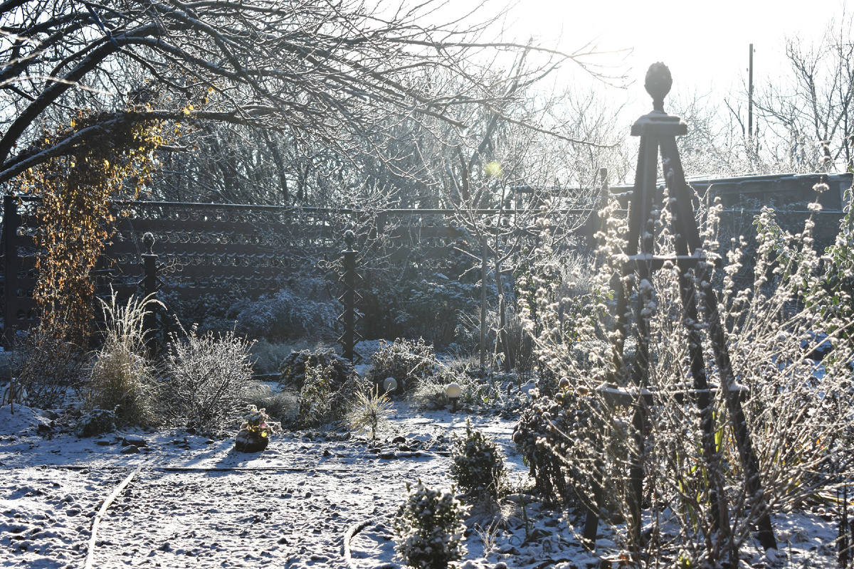 Такой сказочный денек случился на неделе. И мне повезло в этот день пофотографировать. Я люблю зимние фотографии и жду момента, когда можно их сделать. Потому что сад под снегом выглядит волшебно и совсем не так, как обычно. Интересно рассматривать буквально все вокруг: растения, дорожки, опоры. Обелиск, подчеркнутый снегом, просто шикарен. Я рада, что собралась с силами и сделала его в этом году.
