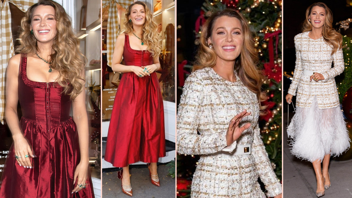 Блейк Лайвли явно пребывает в праздничном настроении. Выйдя на улицы Нью-Йорка, актриса и основательница бренда по уходу за волосами продемонстрировала не один, а два идеально подходящих к праздничному сезону образа - полные драгоценных оттенков красного, блестящих туфель и нескольких зимних белых цветов. Отмечая свое новое сотрудничество с брендом Stoney Clover, известным своими индивидуализируемыми аксессуарами для путешествий и игривой персонализацией, Лайвли встретила гостей в идеальном наряде красного цвета. Ее алое шелковое платье средней длины от Annina было скроено с корсетом, от которого полная юбка с сборками ниспадала до щиколоток. Глазурь на торте? Глубокий вырез был отделана рюшами, что придавало ему дополнительный праздничный шарм. Вдохновленная рождественской цветовой палитрой, она дополнила платье изумрудными украшениями от Lorraine Schwartz, в том числе эффектным колье с камнями. Ее сверкающие туфли с рядами блестящих ремешков добавили блеска. Затем она заменила к
