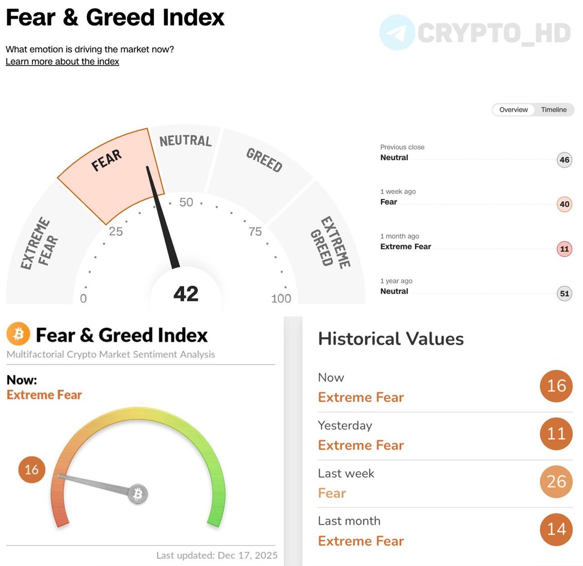 ➤ Криптовалютный рынок = 16 (экстремальный страх).