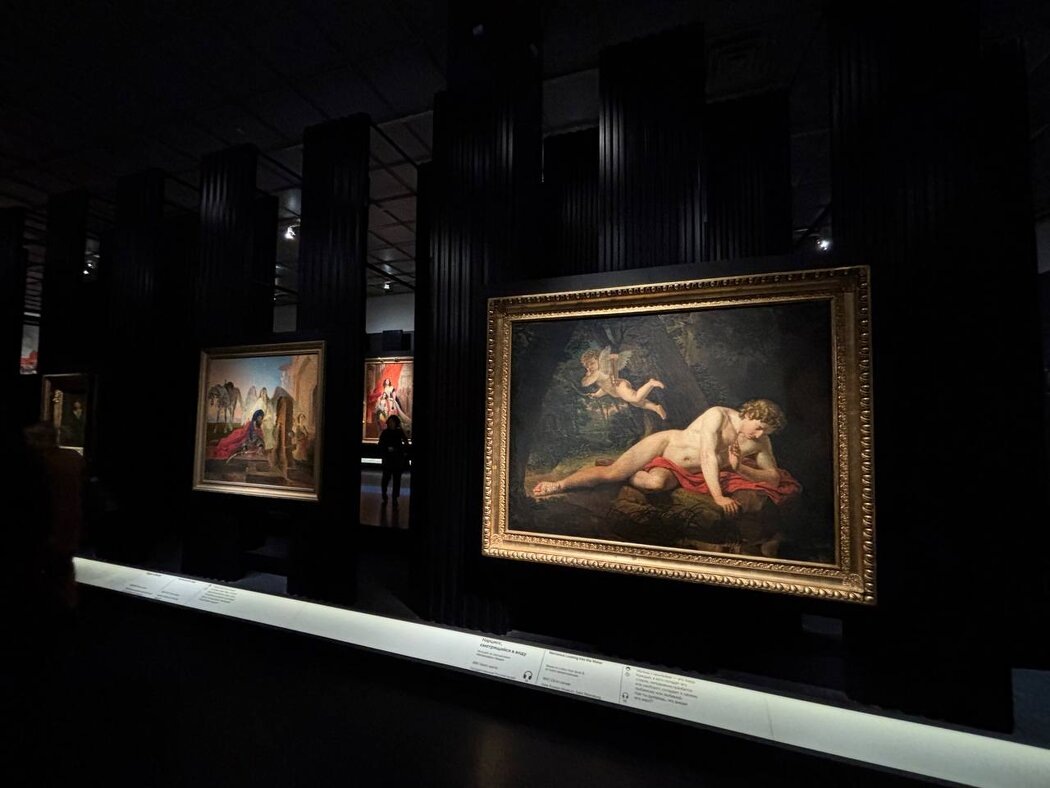 Недавний визит с сыном на выставку «Карл Брюллов. Рим — Москва — Петербург», которая проходит в Новой Третьяковке, стал для меня не просто культурным мероприятием, а поводом для глубоких профессиональных размышлений. Глядя на грандиозные полотна «Великого Карла», как называли его современники, я задалась вопросом: что двигало этим человеком? И может ли то, что мы сегодня привыкли называть «нарциссизмом», быть не разрушительной, а созидательной силой? Кстати, смотрите, какое интересное эстетическое решения оформления пространства. Работы Брюллова и так отличаются какой-то уникальной трёхмерностью и эффектом внутреннего свечения, а в таком чёрном, лёгком, каком-то невесомом пространстве сюжеты картин будто парят вокруг нас. А следующую картину Брюллова я видела ещё в музее Нижнего Новгорода и тогда долго стояла около неё. Очень рада была увидеться с ней снова) Но вернёмся к многогранности нарциссизма, о которой я и хотела поговорить. В современной популярной "психологии" (не просто так б
