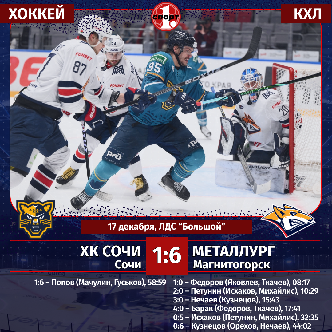 Хоккей. Сезон-2025/2026. Чемпионат КХЛ. 17 декабря. ХК «Сочи» — «Металлург» (Магнитогорск) — 1:6 (0:4, 0:1, 1:1).