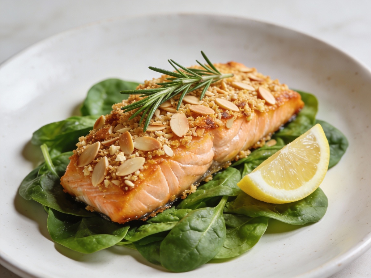 Это блюдо сочетает нежность рыбы с хрустящей корочкой и полезной зеленью. Классический способ приготовления лосося обогащен неожиданным ингредиентом — миндалем, который добавляет текстуру и тонкий ореховый вкус.