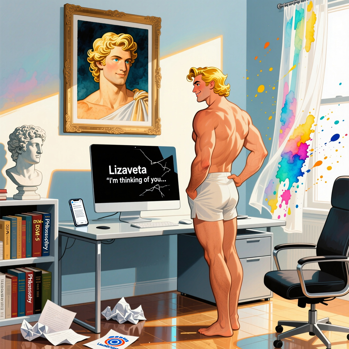 Пришло сообщение от Лизы. Текст. Без поэзии: «Аполлон, я ухожу. Ты прекрасен, как совершенный алгоритм. Но я устала быть для тебя интерфейсом. Хочется иногда быть просто неровным, тихим, но своим шумом».