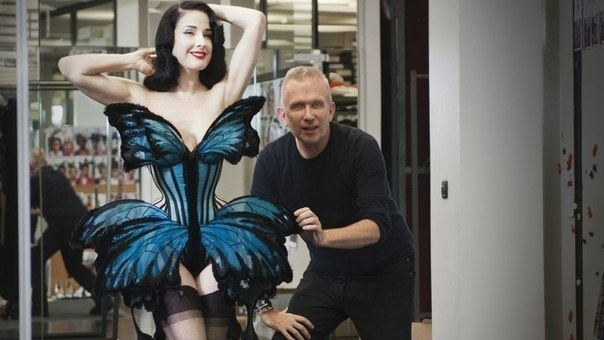 Этот кадр — не про конкретный наряд, а про союз характеров. Дита здесь не просто модель, а полноценная муза, воплощение эстетики бурлеска, провокации и безупречного контроля над собственным образом. Готье — не просто дизайнер, а соавтор визуального мифа, в котором женственность намеренно доведена до предела.