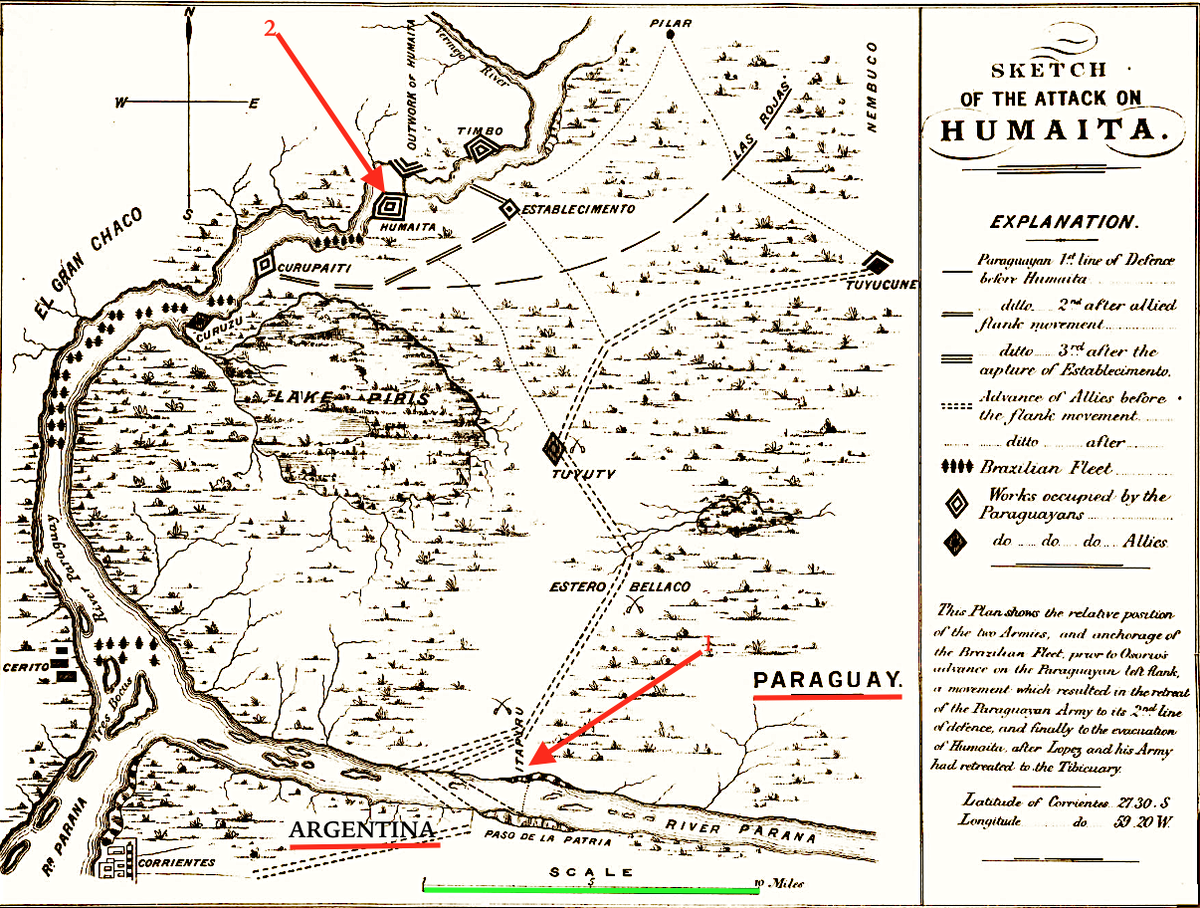 Стратегическая обстановка к середине февраля 1868 г. выглядела для Парагвая удручающе. Союзная армия, насчитывающая в общей сложности более 40 000 штыков и сабель, медленно, словно гигантский ленивец, переваливалась через укрепления Пасо-де-Патрия. Против этой армады маршал Франсиско Солано Лопес мог выставить лишь истощенные, измотанные холерой и голодом остатки своих легионов, вдвое уступавшие противнику по численности. Обреченность открытого столкновения понимал даже такой никудышный стратег, как Лопес. Гений парагвайского сопротивления заключался в использовании географии: болота Ньеэмбуку превращали любой маневр союзников в инженерный ад.