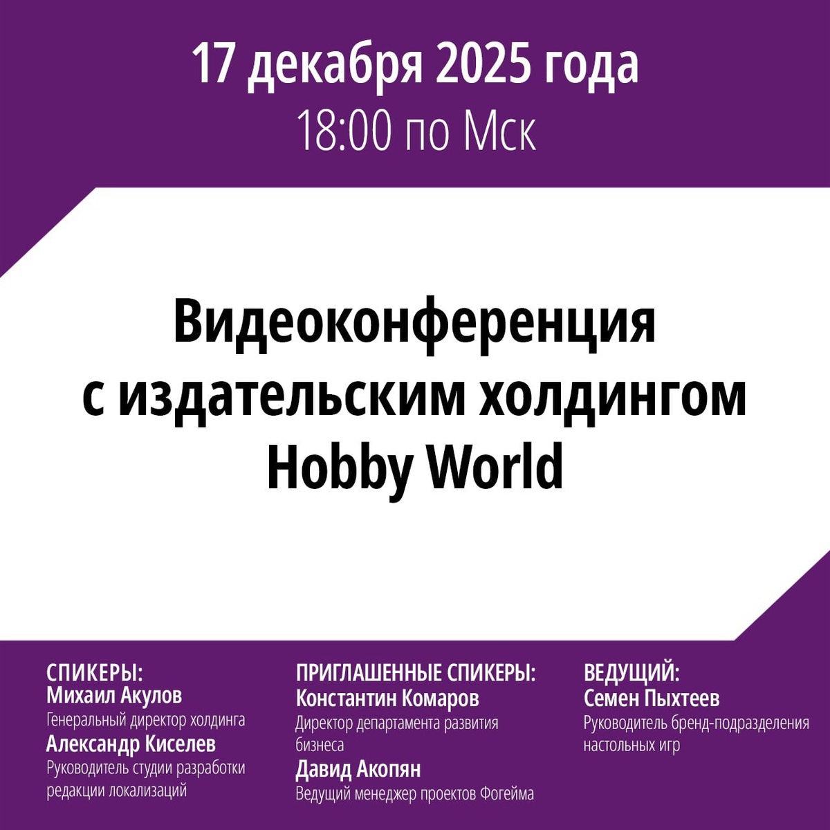 Друзья! Приглашаем вас на ежегодную предновогоднюю трансляцию Hobby World 2025 в формате онлайн, которая начинается прямо сейчас в 18:00
