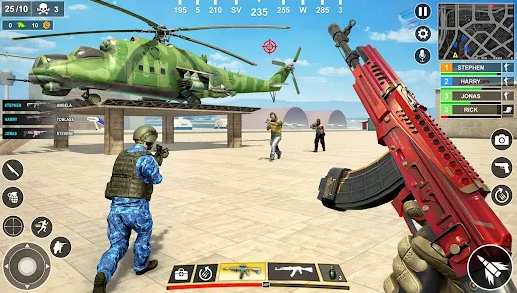 Overview Play as an elite commando in a modern war against terrorists. Fight across realistic terrains with AI enemies, complete missions, and experience smooth auto-shoot controls with HD graphics. Game Modes Campaign: Story-based terrorist takedown Survival: Endless enemy waves PVP (Offline): Practice vs AI enemies Zombie Mode: Survive undead attacks Tank Mode: Control tanks and destroy terrorist bases Defuse Mode: Disarm bombs strategically Features Auto-shoot & swipe-to-aim controls Upgradable modern weapons and explosives Realistic HD graphics & immersive sound
