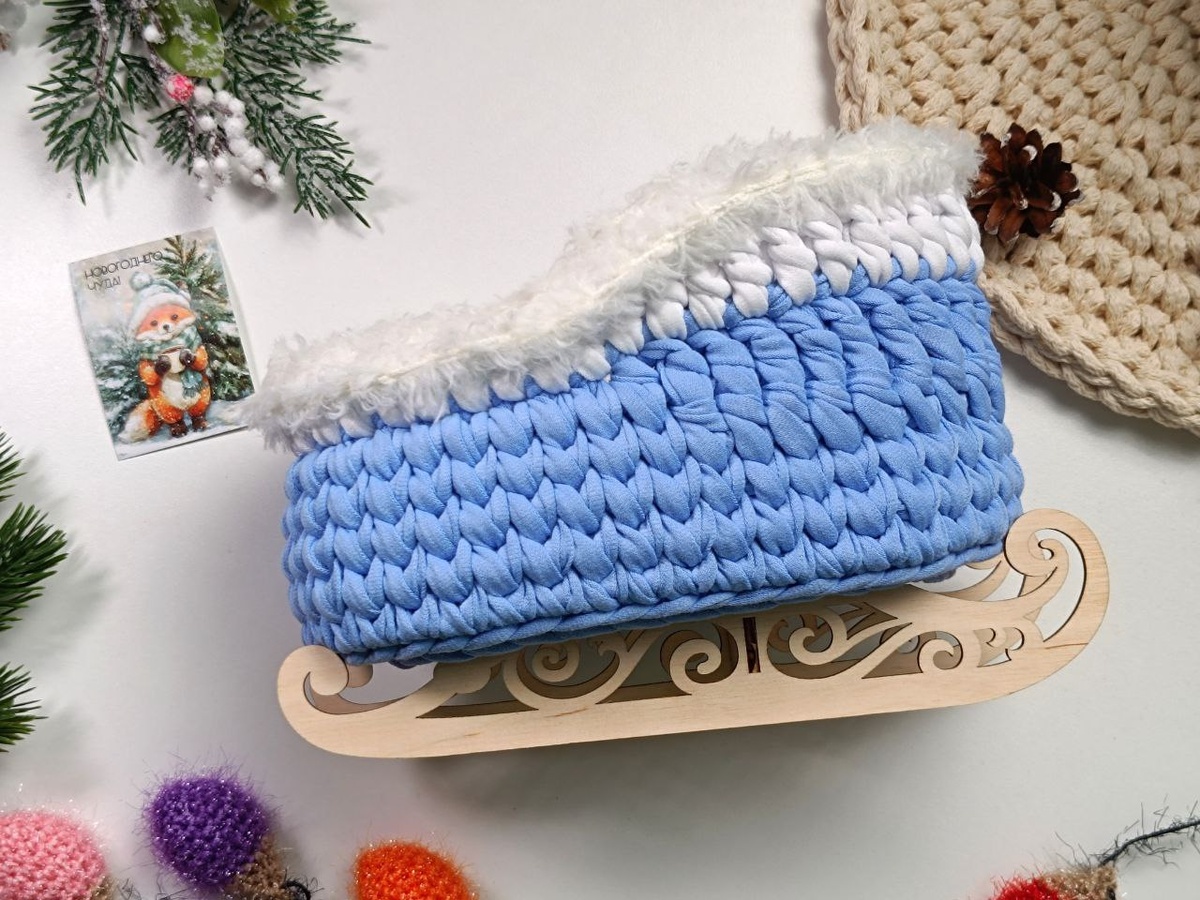 ☃️ Дедушка Мороз всегда у меня ассоциируется с санями. Ведь все мы ждём в новогоднюю ночь сказочную погоду за окном. Небольшой морозец и все белоснежное кругом. Ах, помечтали и хватит. У нас очень теплые зимы, а снег большая редкость. А так хочется вернуться в эту снежную сказку. Предлагаю сегодня связать новогодние сани из трикотажной пряжи. Они станут прекрасным украшением праздника или замечательным подарком для близких. Для вязания потребуется: 1. Трикотажная пряжа 2-х цветов, у меня голубой и белый, пряжа от Saltera, толщина нити 7-9 мм, 100 м в мотке. 2. Набор для вязания саней. У меня размер донышка 13 см × 10,5 см. 3. Крючок 6 мм. 4. Пряжа для обвязки, у меня Yarnart Mink. Я очень полюбила эти сани. Теперь они украшают наш дом к празднику. Видео смотрим в ВК, YouTube и Rutube🩷 Опишите свою новогоднюю сказку, как вы представляете себе самую прекрасную новогоднюю ночь? #вязание_крючком Вязание с Мариной Лосевой