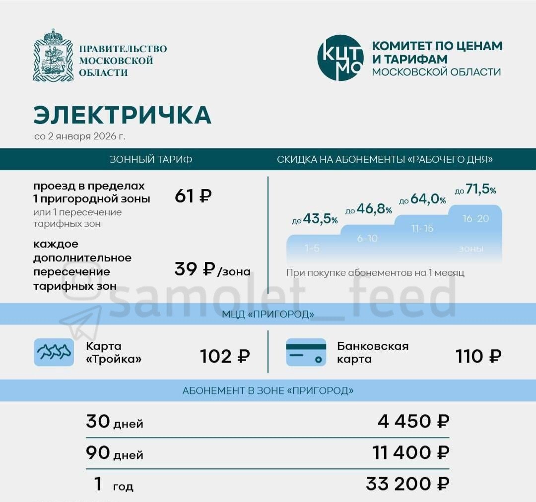 Комитет по ценам и тарифам правительства региона повысит тарифы со 52 до 61 рубля за первую зону и с 36 до 39 рублей за каждую следующую. Тариф в зоне МЦД «Пригород» при оплате картой «Тройка» составит 102 рубля. Стоимость безлимитных проездных в зоне «Пригород» составит 4450 рублей на 30 дней, 11400 рублей — на 90 дней, 33200 рублей — на год. В этом году тарифы уже поднимали дважды. ________ Присылать новость @mstislavz 👉 Обсудить в чате ЖК 👉 Подписаться на канал 📲 Мы в MAX