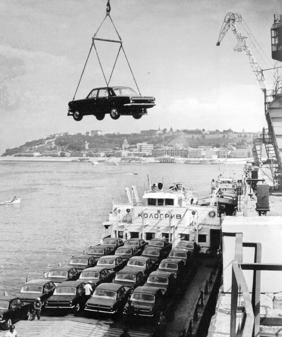 🚗 Кусочек истории Горьковского автозавода Взгляните на этот кадр 1975 года. На нём — погрузка готовой продукции Горьковского автомобильного завода на судно «Кологрив» в Горьковском речном порту. Представьте шум механизмов, команды грузчиков, гул двигателей. Такие снимки — не просто хроника, а живое свидетельство эпохи ❤️