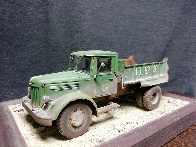 Представляю вам свой МАЗ от AVD.Это моя первая "взрослая" модель после прочтения невероятного количества форумов, журналов, видео и т.д. А также первый опыт использования аэрографа и изготовления подставки. До этого клеил модели только в детстве, когда никакой информации о моделизме для меня не было в доступе.Сборка модели сразу не пошла-так как АВД забыли положить мне некоторые детали, а главное-крышку кузова, в следствии чего в интернете был найден реально существовавший прототип с самодельным кузовом типа "ковш" и брызговиками над задними колесами, трудящийся на постройке Саяно-Шушенской ГЭС.Сделал подсборки, покрасил, захотелось сделать везеринг, но стало страшно закосячить модель и стройка модели встала минимум на пол года, коробка за это время успела хорошо упасть несколько раз, пока неделю назад я не решил, что лучше довести дело до конца вне зависимости от итогового результата.Из доработок соответственно-кузов "ковш" и брызговики самодел из фольги. Перевернул выхлопную трубу наружу. Сделал подставку под МАЗика.Приличного фотика нет, поэтому фоткал на телефон. В живую модель смотрится поинтересней.Набор оставил положительные впечатления как от сборки так и от качества детализации, минус наверно то, что АВД грешит не комплектом деталей в коробках, еще декали толстоваты, не получилось скрыть "ступеньку".Грунт mr surfacer 1000, база Сонет акрил, лак Tamiya+звезда, везеринг-Wilder,протёртый металл кузове делал карандашом.