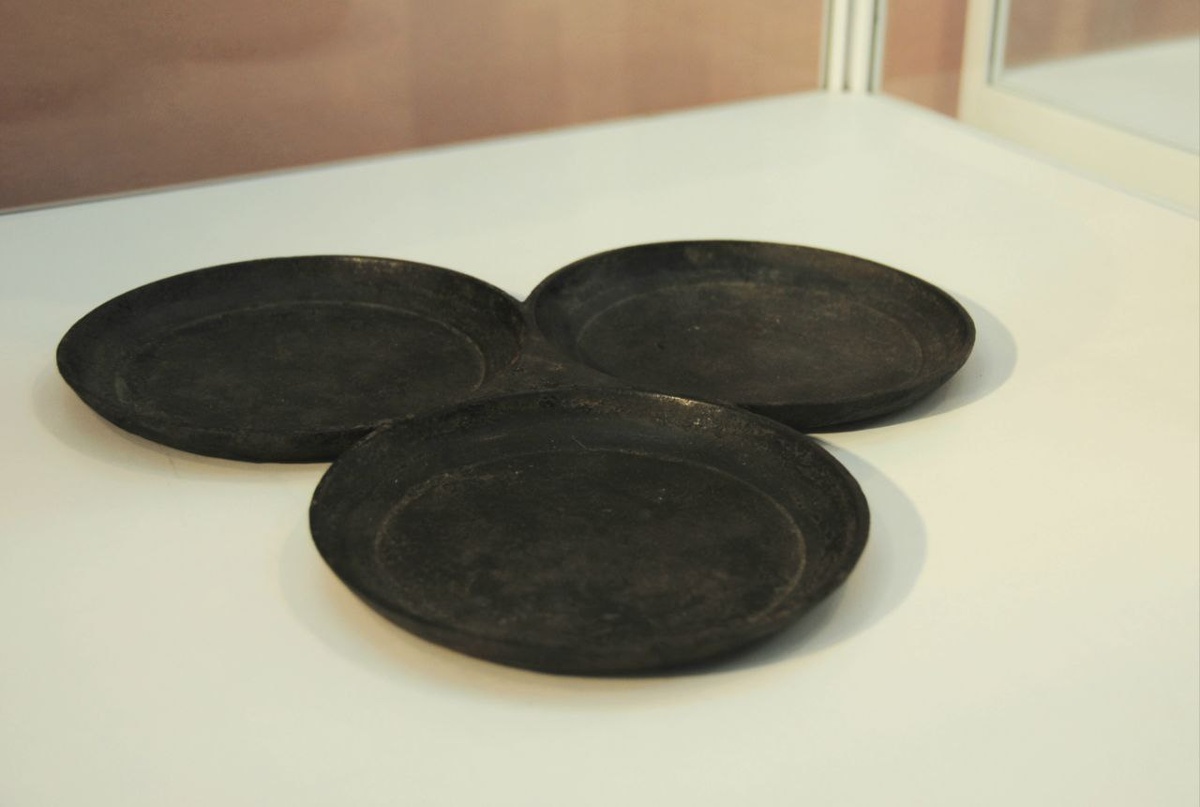 Музейная аннотация объясняет: это походная сковородка. Вернее, три в одной, - сковородка-тройчатка. По всей видимости, использовалась в армии, чтобы ускорить кухонные процессы там, где промедление смерти подобно.