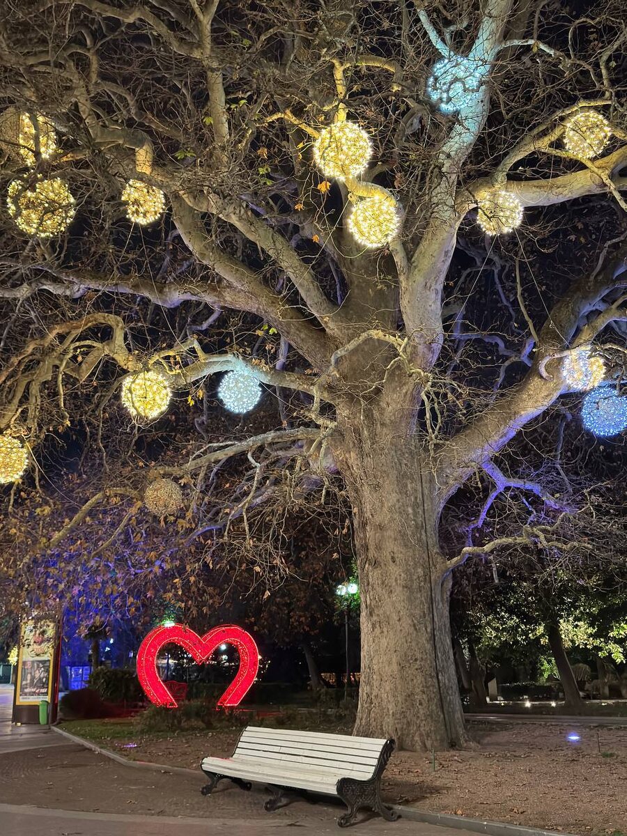 🌊 На ялтинской набережной, среди морского воздуха, кафе и прогулочных скамеек, стоит один из самых известных платанов Крыма — дерево, которое уже более 170 лет украшает центр города и привлекает туристов. Платану больше века. Он видел старую Ялту, курортные прогулки, смену эпох и поколений. Возраст платана оценивают более чем 170 лет, его высота — около 31 метра, а ствол впечатляет — более 5,5 метров в обхвате. И легенда имеется. Говорят, что знаменитым платан стал после того, как Айседора Дункан в сопровождении Есенина побывала в 1923 году на гастролях в Крыму и восхищалась этим деревом. Но историки отмечают, что это скорее городская легенда, так как они бывали в Ялте в разное время, и их встречи здесь маловероятны. А в наши дни возле платана назначают свидания. В 2011 году недалеко от него установили "скамейку влюблённых". Эти деревья растут здесь сотни лет. Ещё в античные времена платаны считались особыми: под ними собирались люди, отдыхали, вели разговоры и принимали важные р