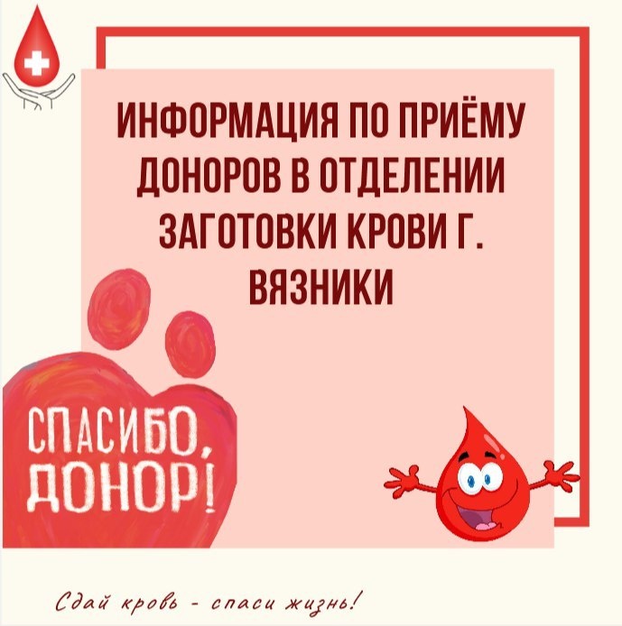 ⚡️ Мы искренне благодарим вас за вашу донорскую активность!❤ ⚠Но сообщаем вам, что с 19 по 26 декабря в Отделение заготовки и переработки крови и её компонентов г. Вязники, по адресу: г. Вязники, ул. Вокзальная, д. 4а доноры с положительным резус-фактором принимаются снова ТОЛЬКО по записи, с отрицательным резус-фактором - без записи! ⛄️До Новогодних праздников ВСЕ доноры, принимаются БЕЗ записи на Областной станции переливания крови в г. Владимире, по адресу: ул. Студенческая, д. 5. Подписаться на новый Вязниковский ТГ-канал
