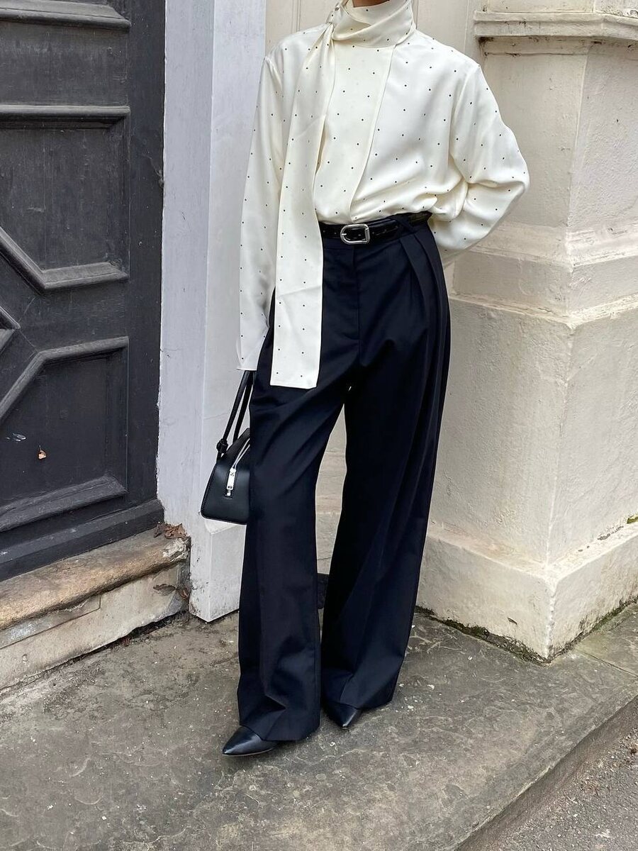 В сезон новогодних вечеринок такую вещь можно дополнить крупными украшениями и получить нарядный образ. А затем блузу легко будет интегрировать в повседневные луки.