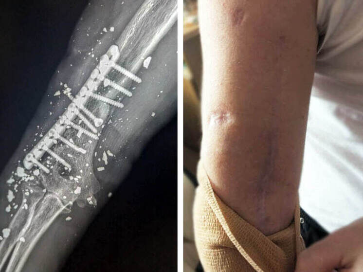 В отделении гнойной хирургии Рязанской областной клинической больницы оказали помощь пациенту с тяжёлой травмой правого плеча, полученной в результате минно-взрывного ранения в ноябре 2024 года. Об этом сообщили в пресс-службе медучреждения. Сразу после получения травмы пациенту была выполнена экстренная операция. Врачи провели первичную хирургическую обработку раны и выполнили накостный остеосинтез плечевой кости с использованием металлической конструкции. Однако спустя непродолжительное время состояние пациента осложнилось: появились признаки повреждения лучевого нерва, а в области установленного металла начался воспалительный процесс. Несмотря на проводимое лечение, ситуация продолжала ухудшаться. В течение года у пациента сформировался хронический свищ, сопровождавшийся постоянным выделением гноя в зоне фиксации металлической конструкции. Для уточнения характера осложнений и определения дальнейшей тактики лечения специалисты провели рентгенографию, а также фистулографию с применени