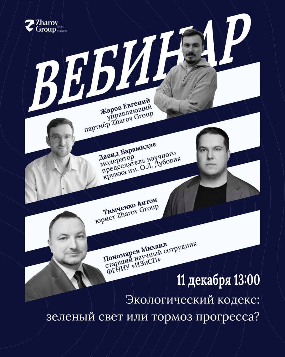 Запись вебинара «Экологический кодекс: зеленый свет или тормоз прогресса?» доступна на всех наших площадках