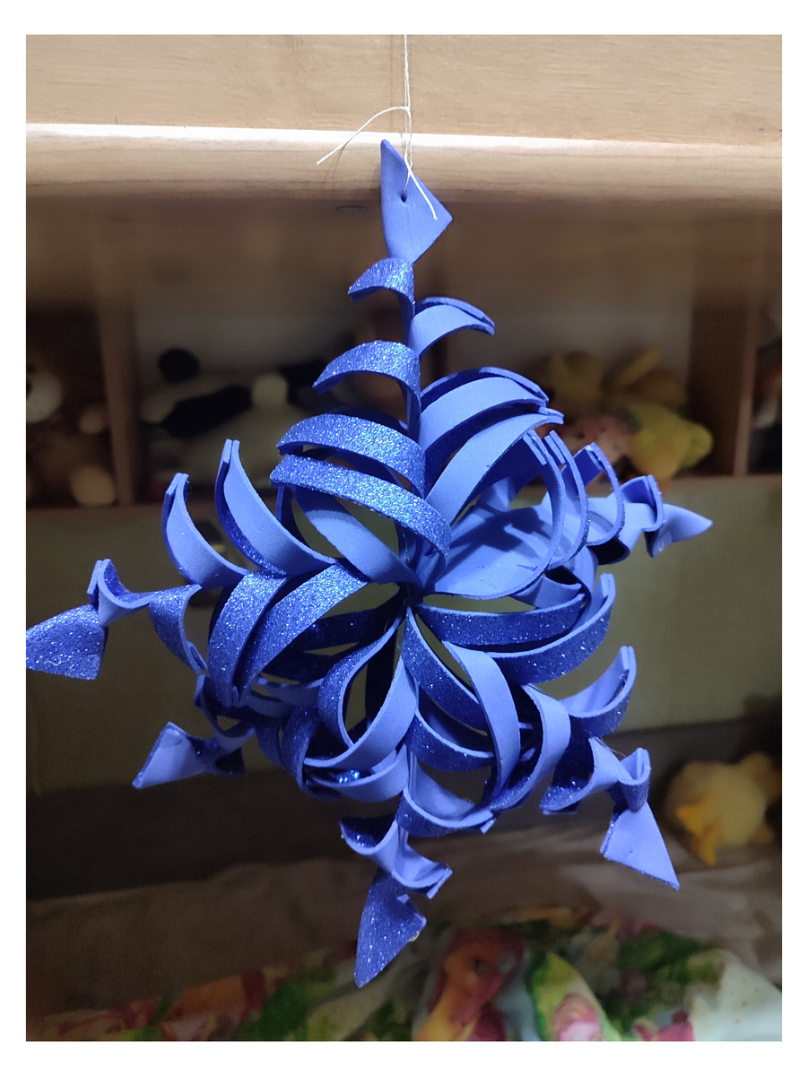 Скоро Новый год. Все украшают свои дома, делают новогодние поделки в школу, сад и поднимают себе настроение! В Питере сейчас снега нет, +5 и сильный ветер... Поэтому делаем объемную снежинку!) Моя выполнена из фоамирана, но такую же можно сделать и из обычной цветной бумаги. ВНИМАНИЕ! Все мои мастер-классы апробированы на детях разного возраста! Поэтому следуйте инструкции и всё получится) 1. нарезаем квадраты 10*10 см. На одну снежинку их должно быть 6 2. Складываем каждый по диагонали. С бумагой это проще, если используете фоамиран, то можно использовать зажимы, как у меня на фото. Затем делаем разметку по одной из сторон (не по стороне сгиба!!) линии на расстоянии в 1 см. (Можно сделать и 0,5 см, но детям сложнее склеивать) 3. По разметке делаем надрезы и разворачиваем. 4. Начинаем формировать части нашей снежинки. Если вы делаете из бумаги, то используйте для соединения клей карандаш. Для фоамирана я использовала композитный клей, можно скреплять и клеем-пистолетом. Загибаем наши ч