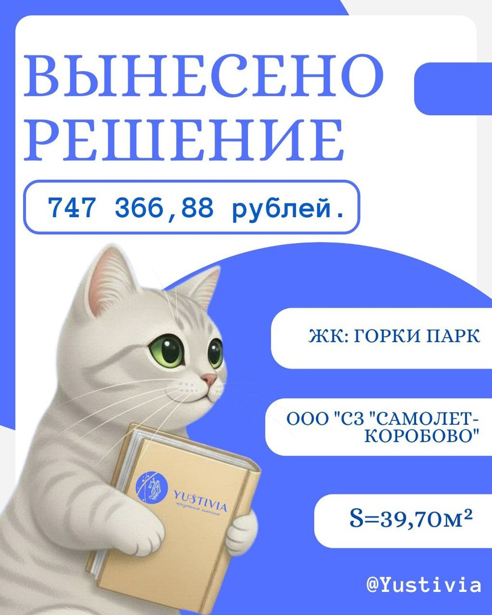 ➿➿➿➿➿➿➿➿ Застройщик: ООО "СЗ "САМОЛЕТ-КОРОБОВО" ЖК: ГОРКИ ПАРК Площадь - 39,70 м² Суд: Видновский городской суд Московской области Судья: Куприянова Я.Г. Дело: № 2-15098/2025 ➿➿➿➿➿➿➿➿➿ Взысканные суммы: ➡️Неустойка за период с 30.09.2025 по 05.11.2025 г.: 450 000; ➡️Моральный вред: 35 000; ➡️Штраф: 220 000; ➡️Суд. расходы: 42 366,88. ➿➿➿➿➿➿➿➿➿ 💸Итого в пользу клиента: 747 366,88 рублей. ❤️Приёмка квартиры и строительно-техническая экспертиза – за наш счет! Юстивия – мы на вашей стороне в борьбе за справедливость!🆗 ➿➿➿➿➿➿➿➿ 📞+7(936)333-33-48 ✅@Yustivia 🌐yustivia.ru