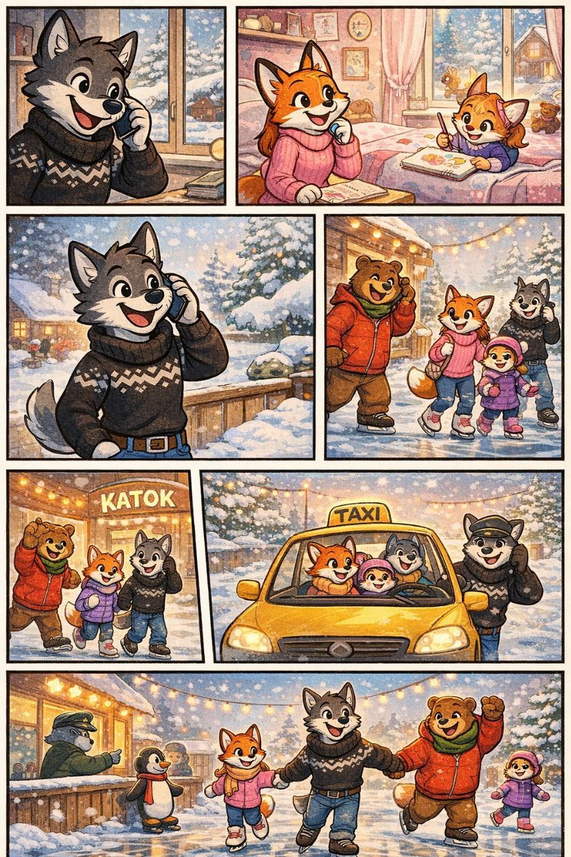 — Всё, вызываю наше роскошное такси! — объявил он. — Едем на каток!