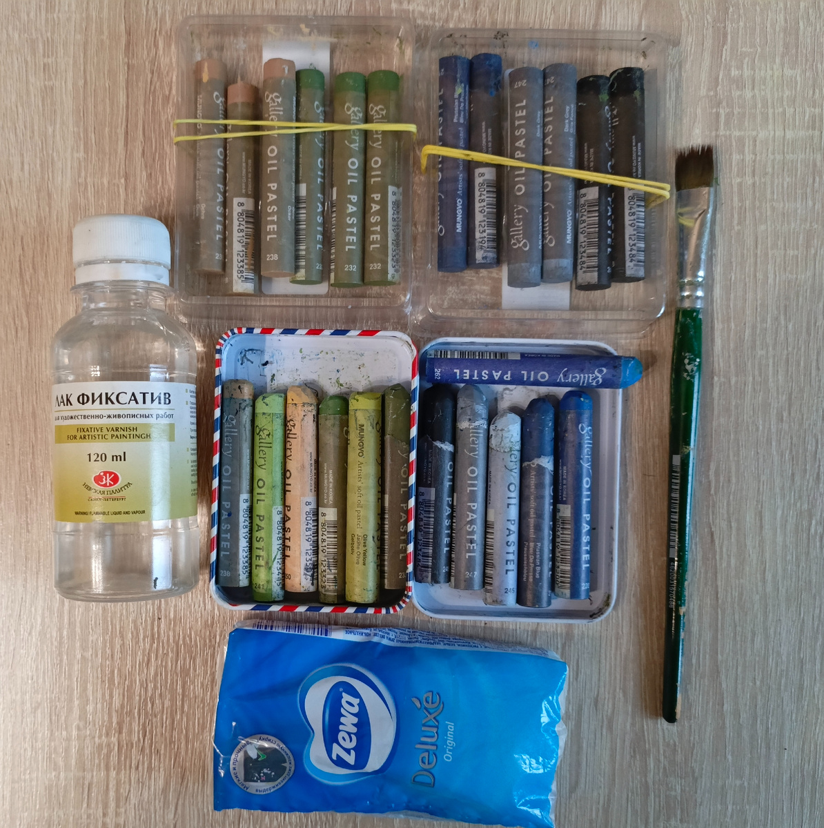 И как оказалось нужна правильная (профессиональная) пастель, пусть и всего с десяток мелков. Не хотелось покупать большой набор, чтобы потом многие цвета лежали без дела.