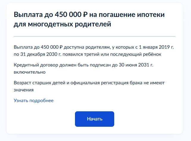 🪖 Раздел с информацией о выплатах на погашение ипотеки для многодетных семей появился на "Госуслугах", сообщили в пресс-службе ДОМ.РФ.