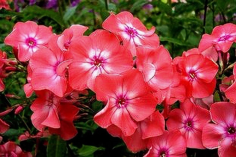 Этот цвет лососевый интересовал меня очень. Да действительно интересный удивительный цвет. На флоксах этот цвет отлично смотрится. У нас много было сортов георгинов, но лососевого не было. На георгинах лучше смотрятся другие цвета. Например бордовый с белыми кончиками. Те же георгины с августа по сентябрь цветут. А вот флоксы с июля по сентябрь включительно! Собственно говоря впервые лососевый цвет флокса я увидел на выставках Цветоводов Москвы. Выставках флоксов, которые бывают по 3-4 выставки флоксов в сезон. Итак приехав на Новинский Бульвар в Москве, где проходила ярмарка флоксов. Тут я и приметил сорт Салмон Глоу. Да покупать цветущие флоксы лучше. Всегда без пересорта. Салмон Глоу произвёл впечатление. Лососевые цветы с белым центром. Это очень эффектно и зрелищно. Вот на фото Салмон Глоу Есть и другие лососевые сорта. Но лучший на мой взгляд является флокс Фобос. Да этот сорт очень хорош. Чем же? Во первых стебли очень прочные прямые. Стебли также толстые и не ломаются просто