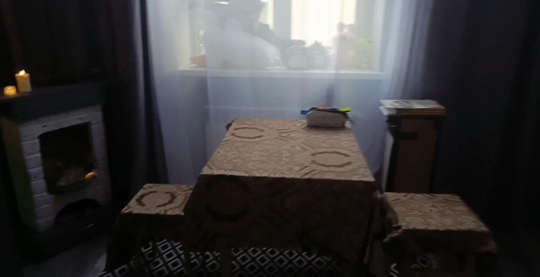 Итак, стол перенесен в зал, расставлены свечи, включены новогодние декорации, музыку Женя включил сам. Сидим, балдеем, ждем учителя у окна…