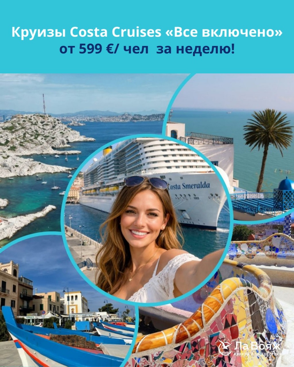 Наслаждайтесь «Все включено» в круизах Costa Cruises по Северной Европе и Средиземноморью по спеццене от 599 €/чел! Предоплата всего 120 €/чел! 📌 Всё, что нужно: выбрать - круиз Costa Cruises* по тарифу «Все включено с пакетом напитков (All inclusive)» и внести 120 €, остальное — за месяц до круиза! Максимально удобно и никакого стресса. Что включено в тариф «Все включено с пакетом напитков (All inclusive)» ? - Вас ждут вкусные завтраки, сытные обеды и элегантные ужины в основном ресторане или, на ваш выбор, в ресторане «шведский стол», с безалкогольными и алкогольными напитками (пакет «My drinks»). - С первого до последнего дня морского путешествия — абсолютно беззаботный отдых с незабываемыми моментами! 🔸 Условия акции: - спеццена действует на выборочные круизы в период с декабря 2025 по декабрь 2026 года, забронированные до 02.03.26 - портовые сборы и налоги включены в стоимость - дополнительно оплачивается сервисный сбор (можно оплатить заранее или он будет списываться ежед