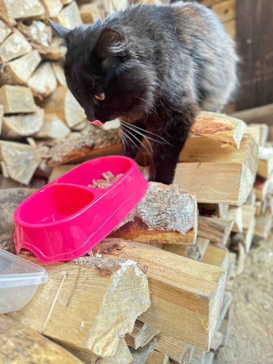 Мы устроили ему на дровянике жилище теплое , кормим его и он очень рад, что есть уже его собственный 🏠 дом . В помещение заходить боится. Свозили его в клинику, сдали все анализы. Кот абсолютно здоров. Ему 5 лет примерно. Постригли ему колтуны, сделали прививки. Он очень испугался когда его везли в машине в клинику и был безумно рад когда привезли его домой. Он окончательно убедился, что его любят и никуда не прогонят. С Эриком только познакомился , но очень боится собак. Видимо доставалось от них.